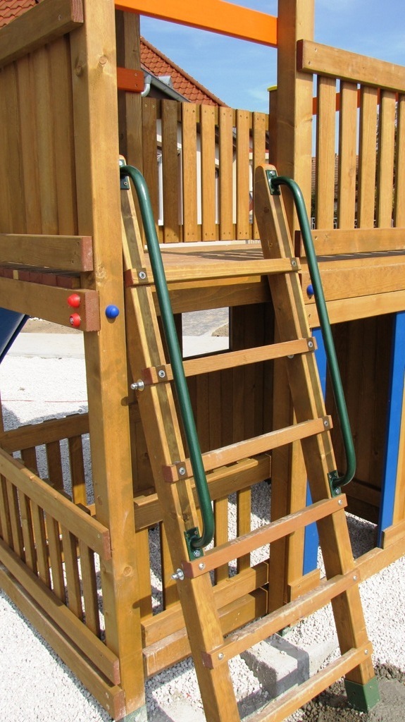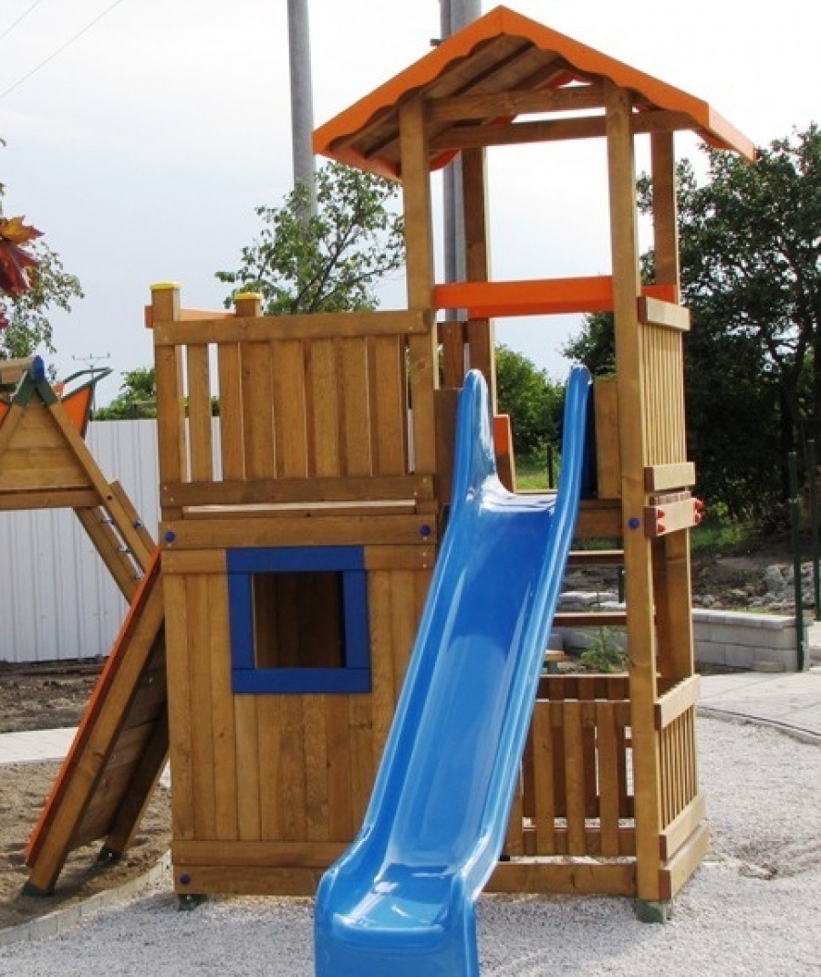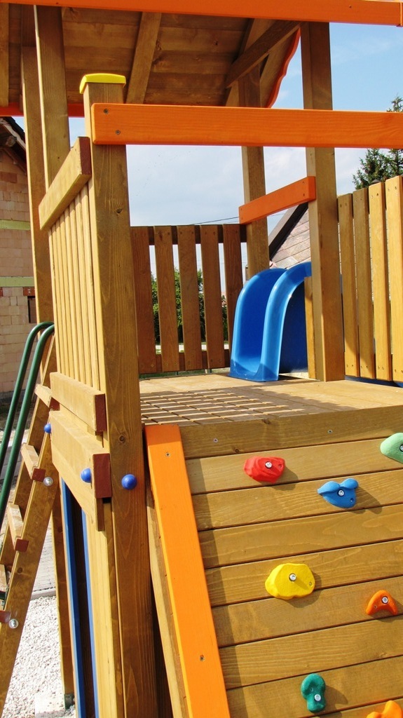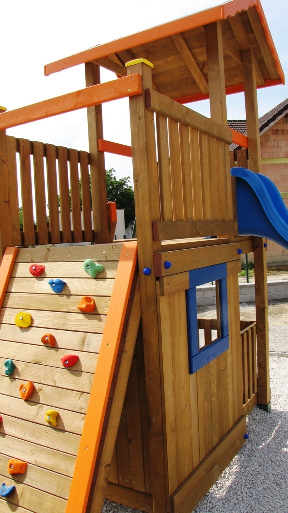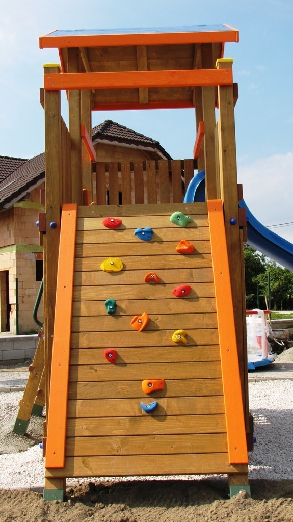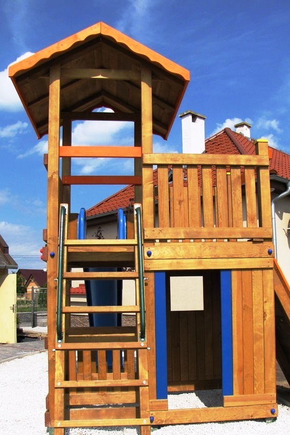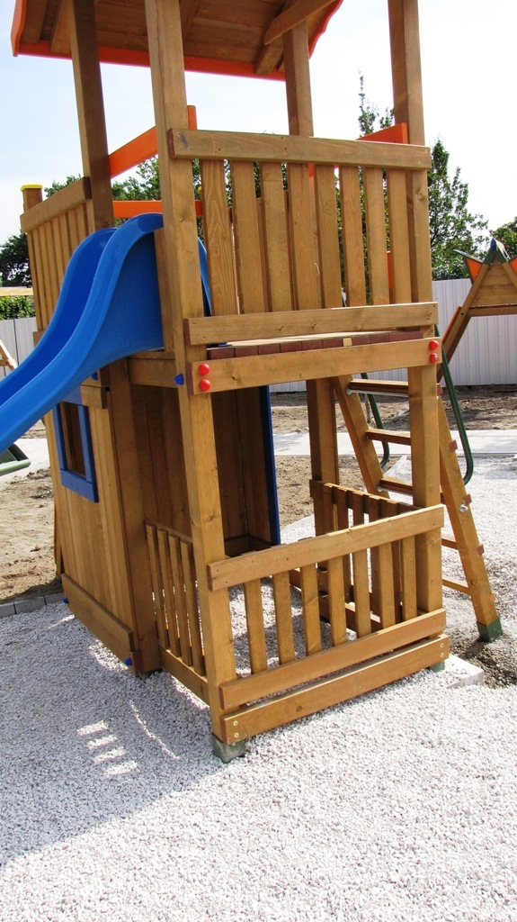Určené pre deti od 4 rokov.Rozdiel medzi modelovou radou- Mini a modelovou radou -Maxi je vo výške podesty a teda aj prípadného pádu. Pri "Maxi" výške t.j. 150 cm je potrebné mať naokolo povrch tlmiaci nárazy z pádu. Podľa EN 1176 to má byť okrúhliakový štrk, drevená štiepka, alebo gumená dlažba.Maxi Veže sú iné aj v tom že na prízemí pod terasou je dostatočný výškový priestor na umiestnenie komnaty v ktorej sa deti môžu hrať. Do komnaty o rozmere- 120x200cm, vedú "ozajstné dvere". Z pohodlia komnaty možno okolie pozorovať cez "okno". Súčasťou komnaty býva tradičná obojstranná "Magnetická tabuľa" .Na tabuľu možno písať aj v komnate, ale písať na ňu môžu aj tí ktorý sa hrajú vonku.Je viacero spôsobov ako sa dostať na terasu. Prístup na terasu a ku šmykľavke je možný po schodoch, ale schody môžu byť nahradené Rebríkom, Lezeckou stenou, alebo Lanovou sieťou.Rozmery zariadenia : 500 x 200 cm . Výška podesty 150 cm od zeme. Celková výška zariadenia je 330 cm. Ochranná zóna je 800 cm x 500 cm resp., 150 cm okolo zariadenia. Ku Strážnej Veži je možné pripojiť aj Hojdačkové rameno pre dvehojdačky. Rameno sa nachádza na opačnej strane ako terasa. V tomto prípade má zariadenie dĺžku 650 cm.