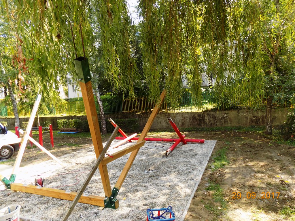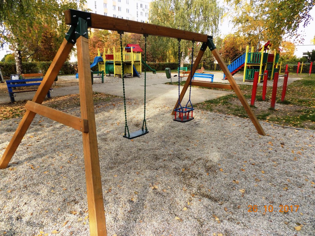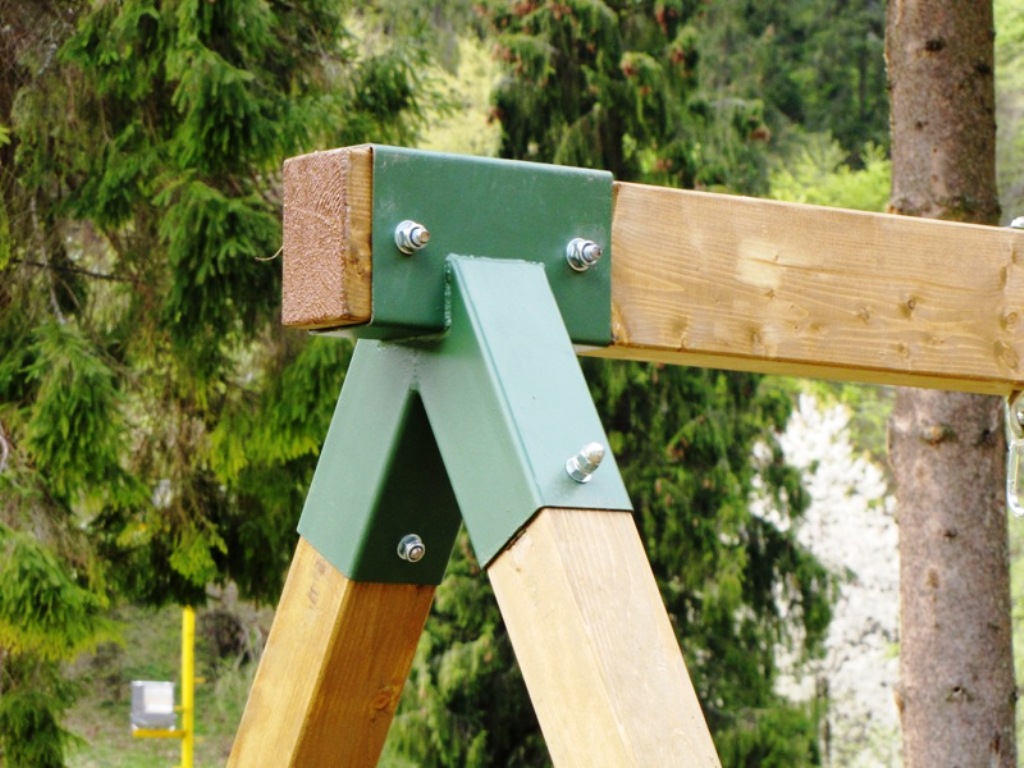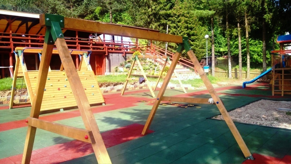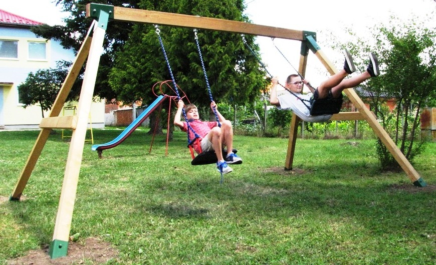 Konštrukcia je určená pre dve deti. Pre deti od 2 rokov je určená sedačka - "hojdačka pre najmenších". Táto hojdačka má zabezpečenie proti vypadnutiu. Povrch oboch sedačiek je pogumovaný a má protišmykovú úpravu.Závesné reťaze sú pogumované taktiež.Pri tomto type povrchovej úpravy reťazí "zacviknutie" kože alebo dokonca prsta nie je možné. Povrch tlmiaci pád, pod hojdačkou má byť podľa STN 1176 buď okrúhliakový štrk, drevená štiepka alebo gumenná dlažba. Pre túto konštrukciu je potrebné mať k dispozícii priestor veľký 4,5 m x 8 m. V tomto priestore nesmú byť 385 cm pred a 385 cm za hojdačkou žiadne iné predmety.Výška zavesenia hojdačiek je 240 cm. Hojdačky visia 50 cm nad zemou. Konštrukcia býva pevne osadená do terénu čo ju robí neprenosnou.